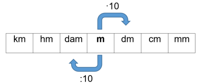 Pituuden ja massan suhdeluku on 10. Aina kun pituuden tai massan yksikköä muutetaan yhdellä luku kerrotaan tai jaetaan kymmenellä. Kun tilavuus ilmoitetaan litroina, myös sen suhdeluku on 10.