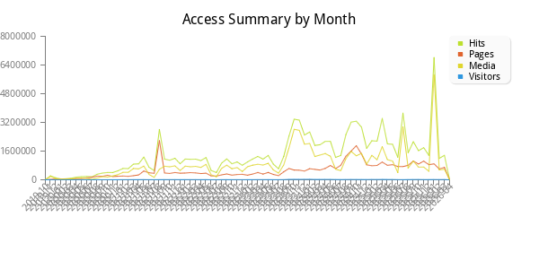 | Day | Hits | Media | Pages | Visitors | Traffic | |||||